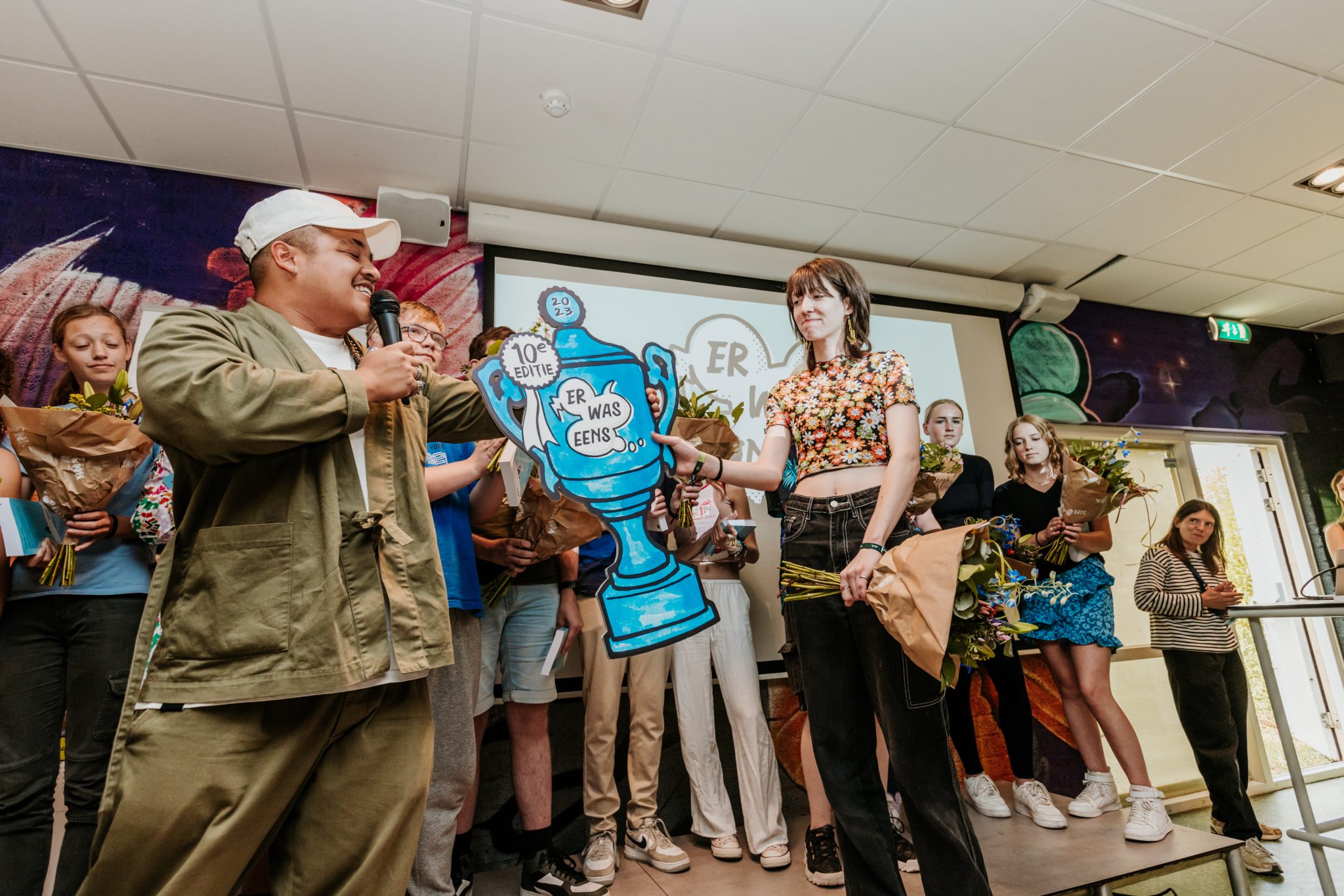 Uit alle inzendingen kiest een jury de drie beste verhalen. Deze drie groepen worden aanvullend uitgenodigd om de jury te overtuigen waarom zij moeten winnen aan de hand van een op film opgenomen pitch. Zodra de jury het winnende verhaal heeft gekozen, wordt met de school contact opgenomen om op de eigen school met alle leerlingen, docenten en familieleden de prijsuitreiking te vieren. Alle leerlingen die aan het winnende verhaal hebben meegeschreven, ontvangen een boekenkast met alvast tien leesboeken erin!